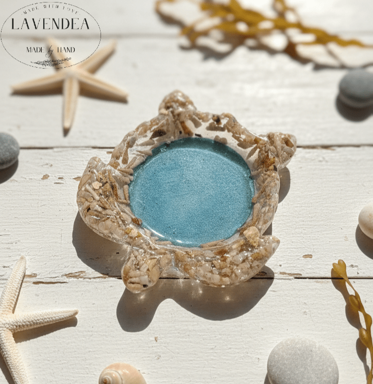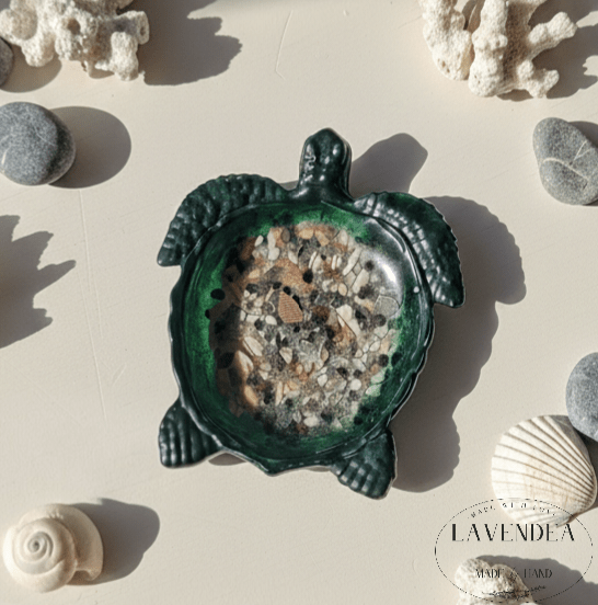 Ročno izdelana skleda v obliki želve iz epoksi smole je edinstven dekorativni kos, ki v prostor vnese pridih morja, narave in umetnosti. Vsaka skleda je ulita ročno, zato je prav vsak izdelek unikaten, z lastnim značajem in videzom, ki ga ni mogoče popolnoma ponoviti. Izdelana je iz visokokakovostne epoksi smole, ki je kristalno prozorna, obstojna in odporna, zato bo svojo lepoto ohranila dolga leta.